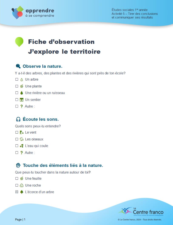 Fiche d’observation – J’explore le territoire