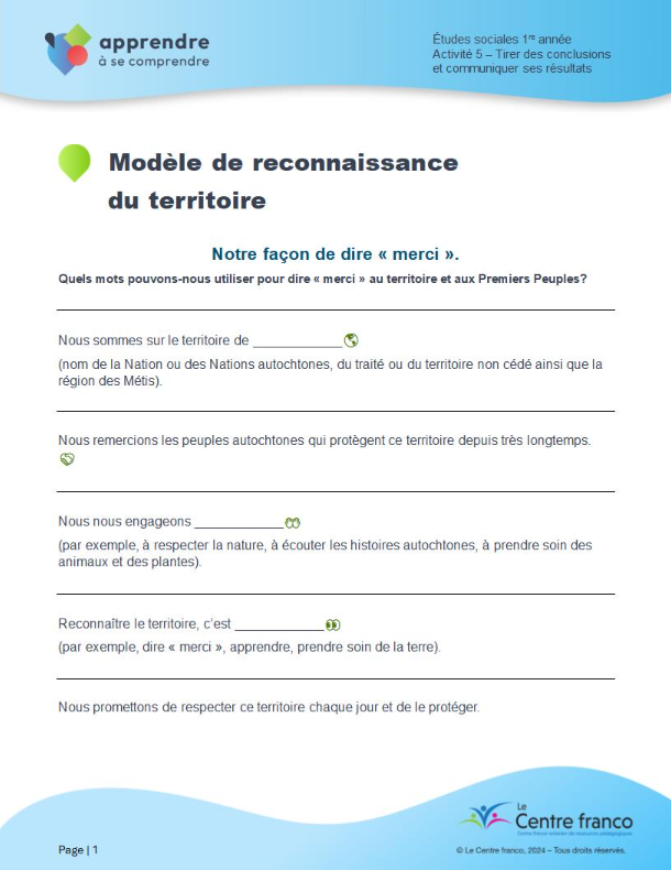 Modèle de reconnaissance du territoire